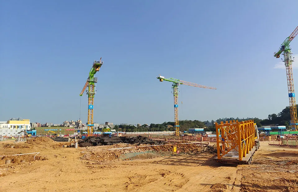 يتطلب مشروع إنشاء المجمع المدرسي هذا رافعات برجية متعددة للتعامل مع مبانٍ مرتفعة ذات ارتفاعات متفاوتة، حيث يتسم مخطط الموقع بازدحام شديد، مما يتطلب تنسيقاً مناسباً بين الرافعات البرجية، ومصاعد الإنشاء، والمعدات الأخرى مع تجنب التداخل العرضي.